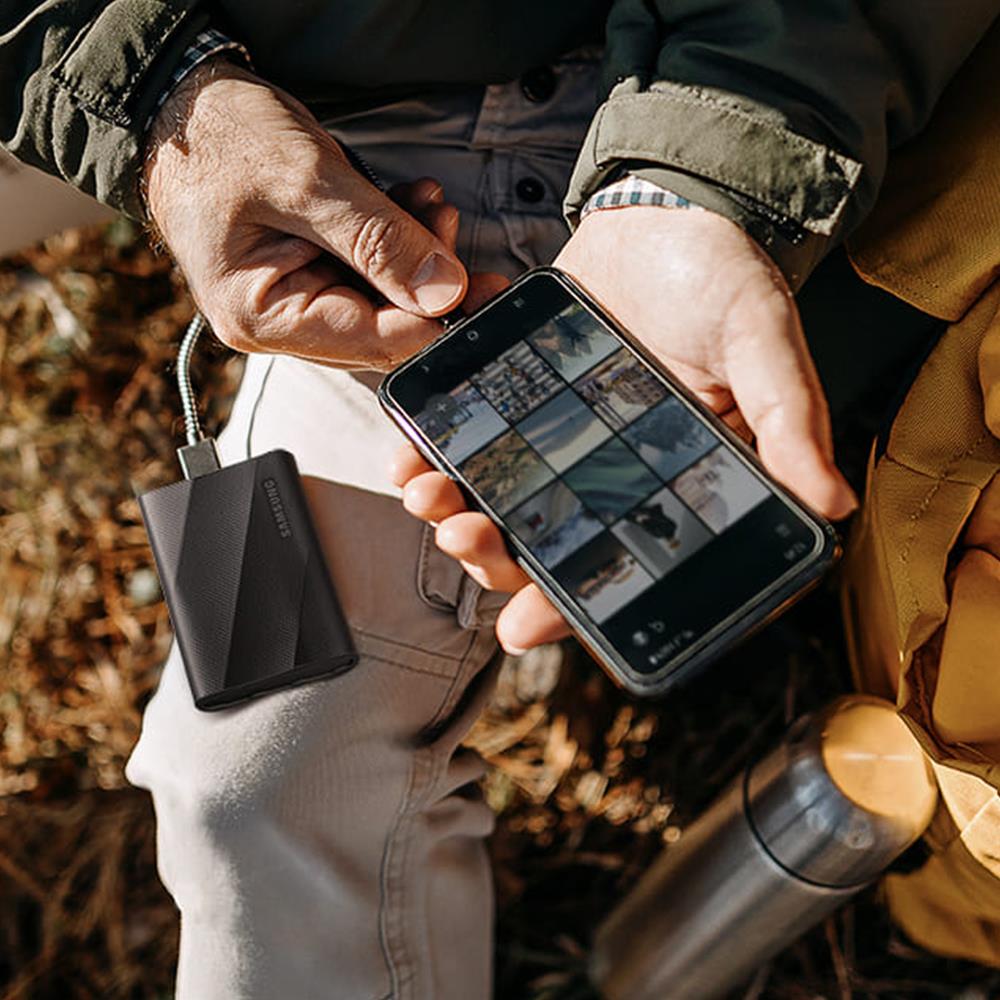 Синхронізуйте свої пристрої за допомогою T9. T9 сумісний з Windows, macOS, телефонами і планшетами на базі Android, ігровими консолями, 12K-камерами і багатьом іншим. У комплект також входять кабелі USB-C - C і USB-C - A для безперебійного підключення.