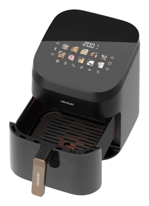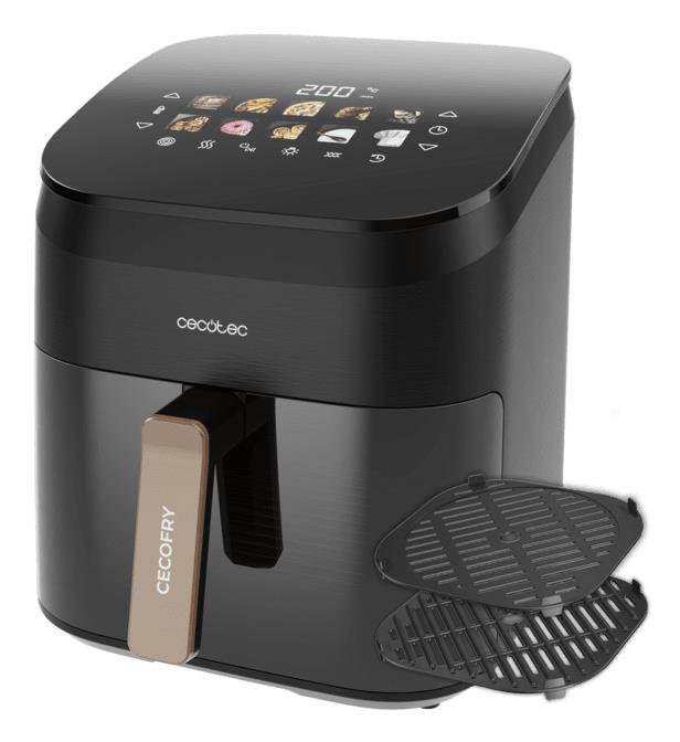 Cecotec Cecofry&Grill Smokin' 6500. Тип продукту: Аерофритюрниця з гарячим повітрям, Місткість: 6,5 л, Температура (мін): 40 °C. Тип конструкції: Поодинокий, Колір продукту: Чорний, Коричневий, Тип керування: Сенсорний. Потужність: 2200 Вт, Вхідна напруга мережі: 220-240 В, Частота вхідного змінного струму: 50/60 Гц